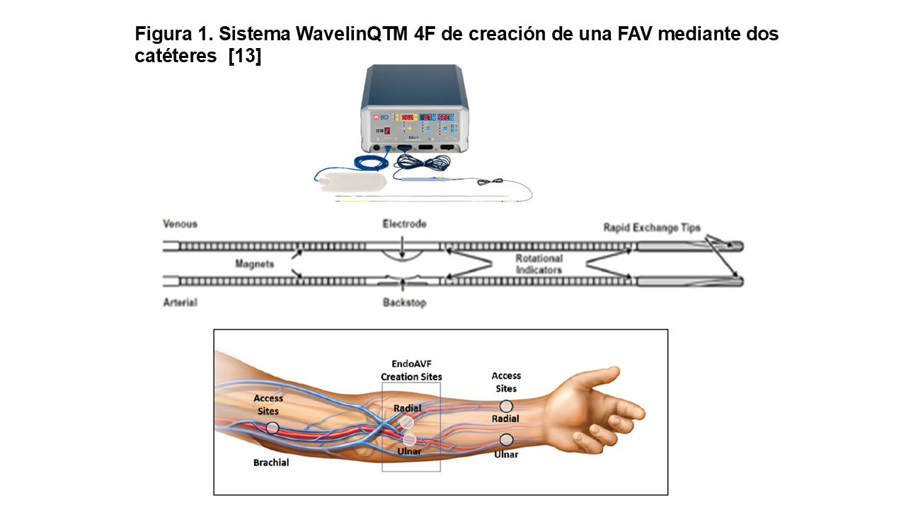 Actualmente, existen dos sistemas principales que han sido aprobados y comercializados para la creación de endoAVF: WavelinQ y Ellipsys. Ambos sistemas ofrecen una alternativa mínimamente invasiva a la cirugía tradicional [11] [12] [13] (Tabla 1).
