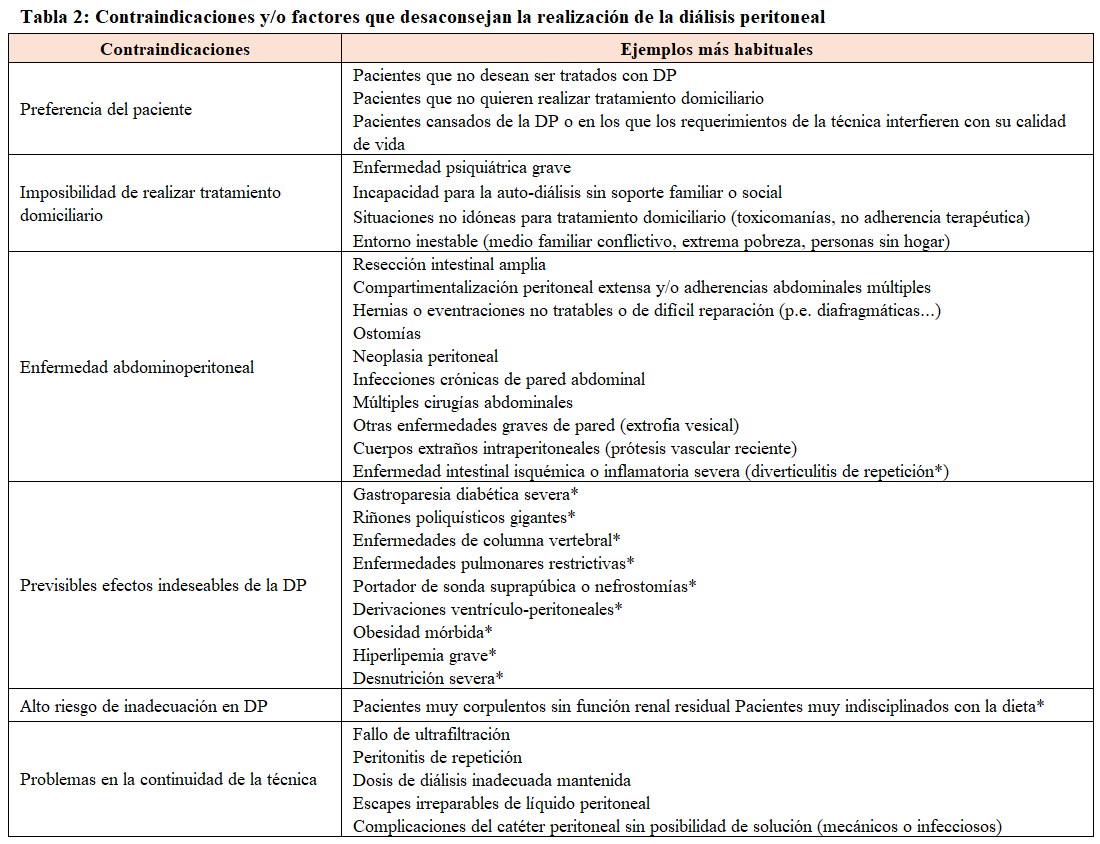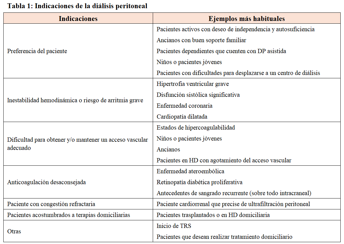 Utilización de la diálisis peritoneal. Indicaciones y contraindicaciones. Selección de la modalidad de tratamiento renal sustitutivo